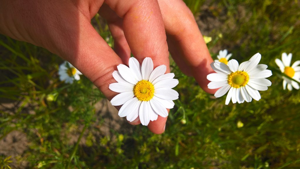 Łąki w maju i czerwcu pokryte są pięknym dywanem białych kwiatów rumianku. Warto zebrać je i ususzyć w ciemnym miejscu, aby móc cieszyć się cały rok doskonałym wpływem rumianku na skórę. Jeśli nie jesteś fanem biegania po łąkach i zbierania ziół, zawsze możesz suszone kwiaty kupić w sklepie zielarskim. Dzisiaj opiszę Ci proces przygotowania oleju – a raczej maceratu z rumianku.